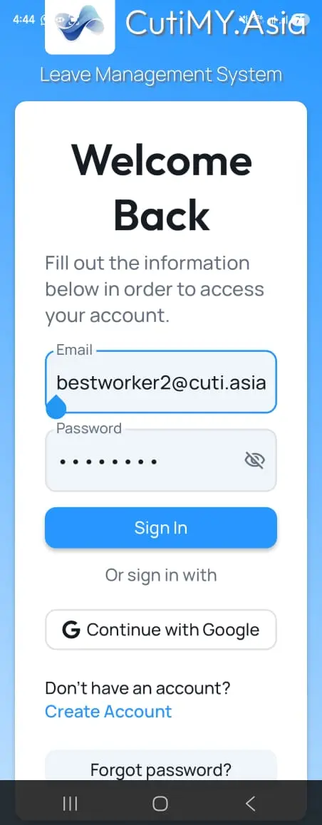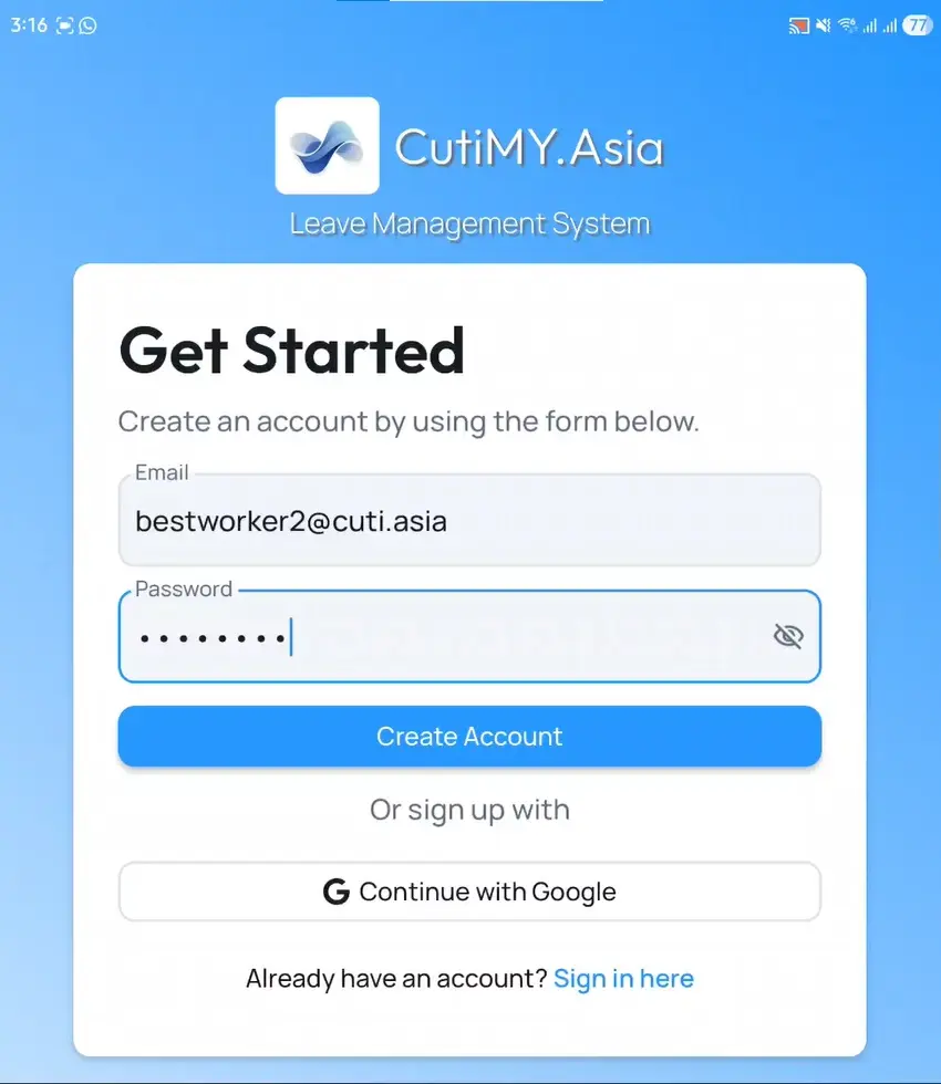 You can start to input your (1) User Email Address as Login name and Secure Password, or (2) alternatively, you can login with your Google Account.