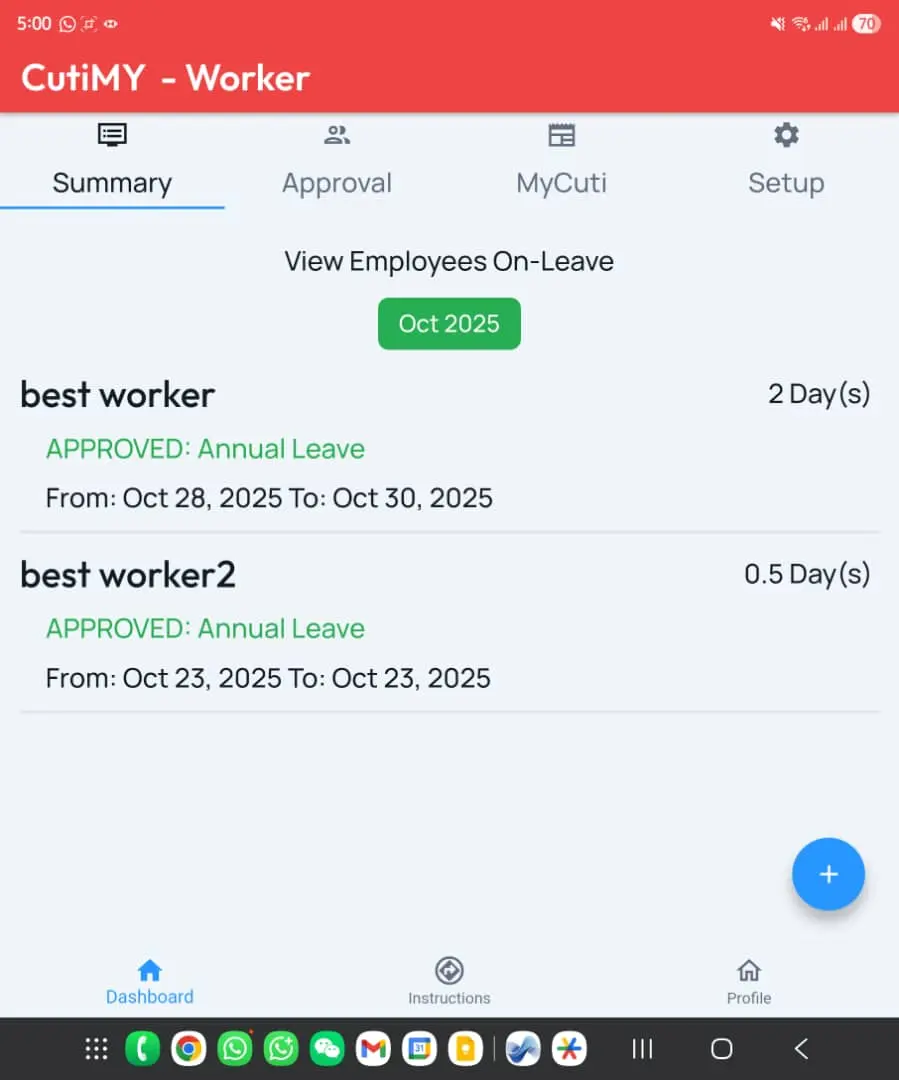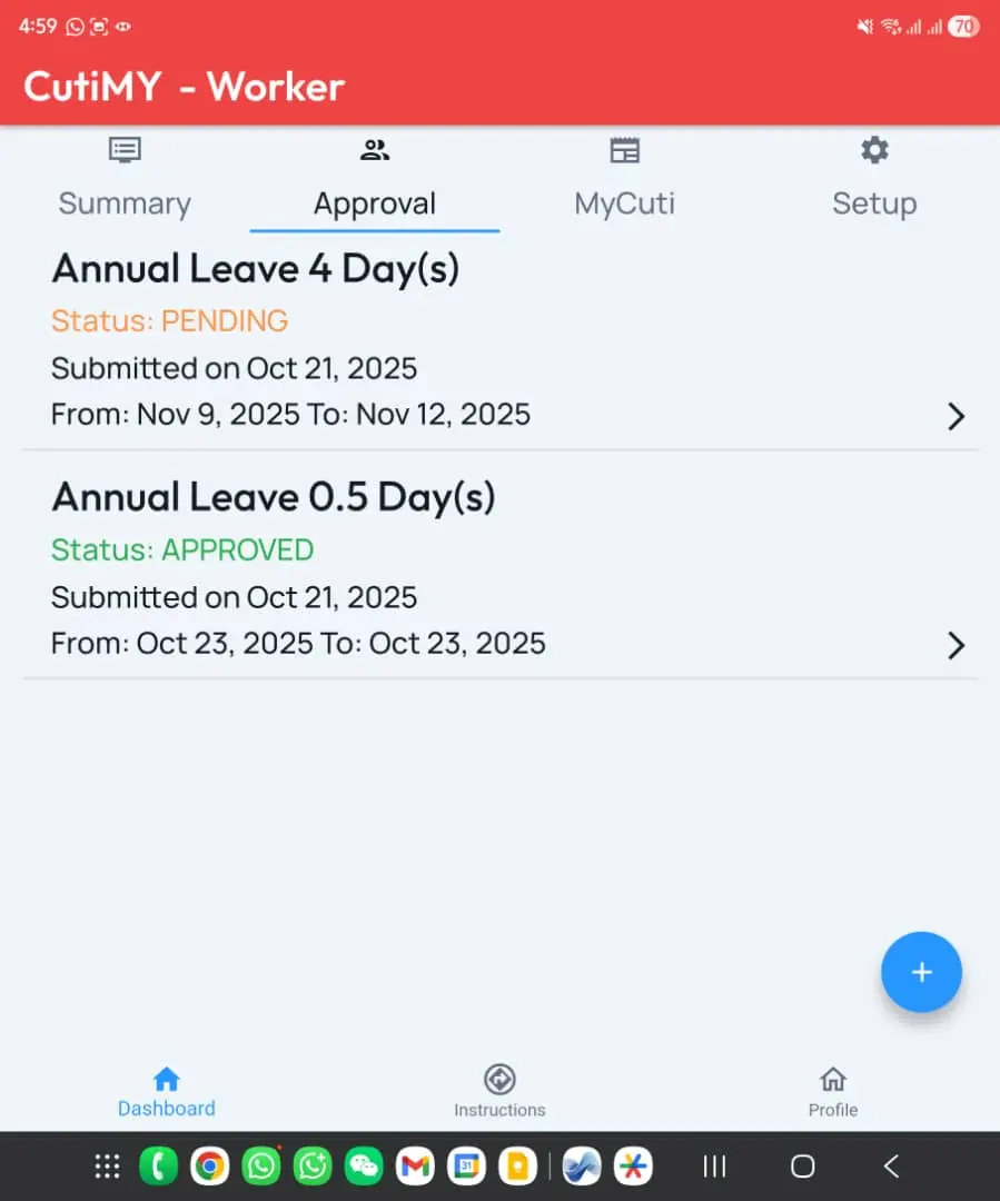 This is the page provides an overview of all your leaves. Those leaves that you have applied in all its status.