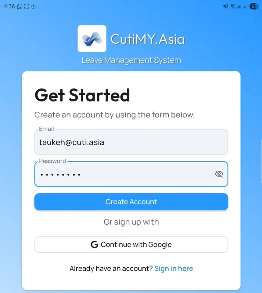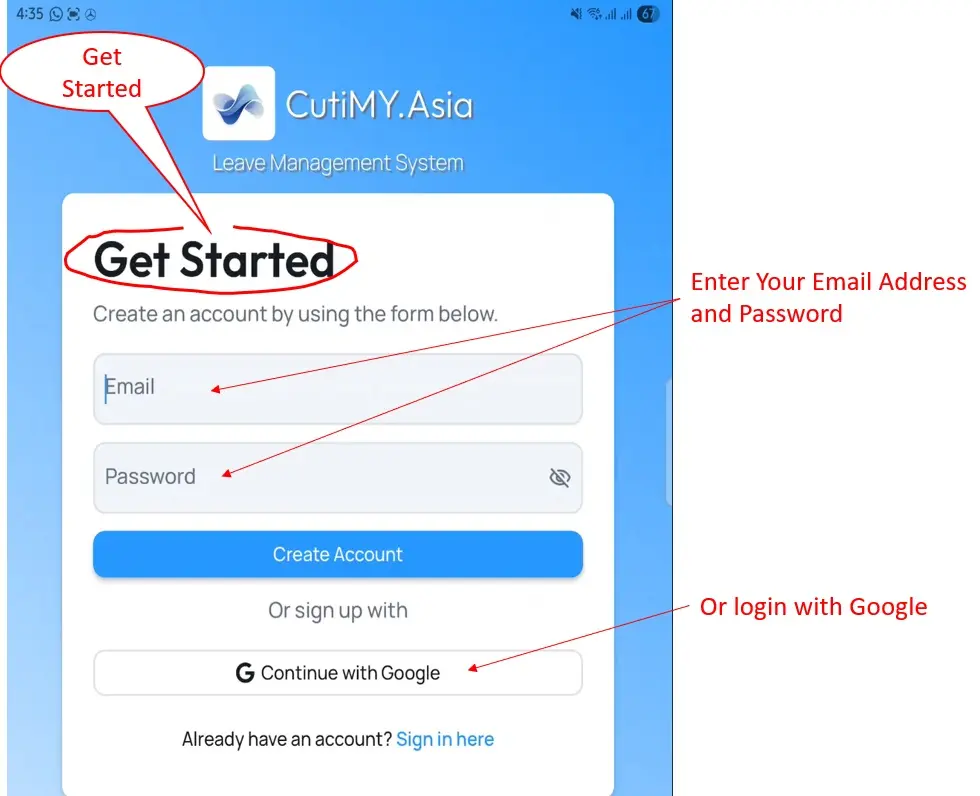 After that, input your (1) User Email Address as Login and a Secure Password, or (2) login via your Google account.