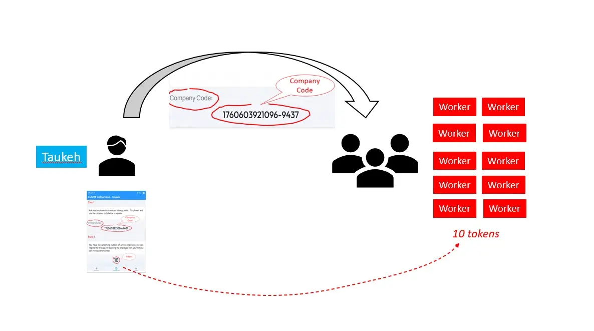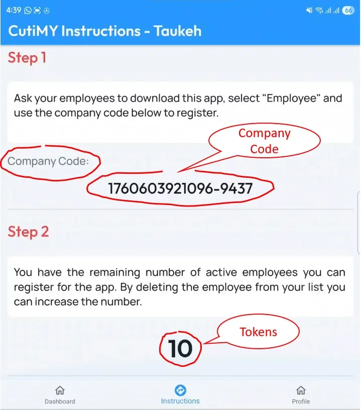 Your employees will have to download this app from Google Play. You will need to provide them with the company code so that when they set up, this code will be entered. The Company Code is the key that binds each of your employees with your company.